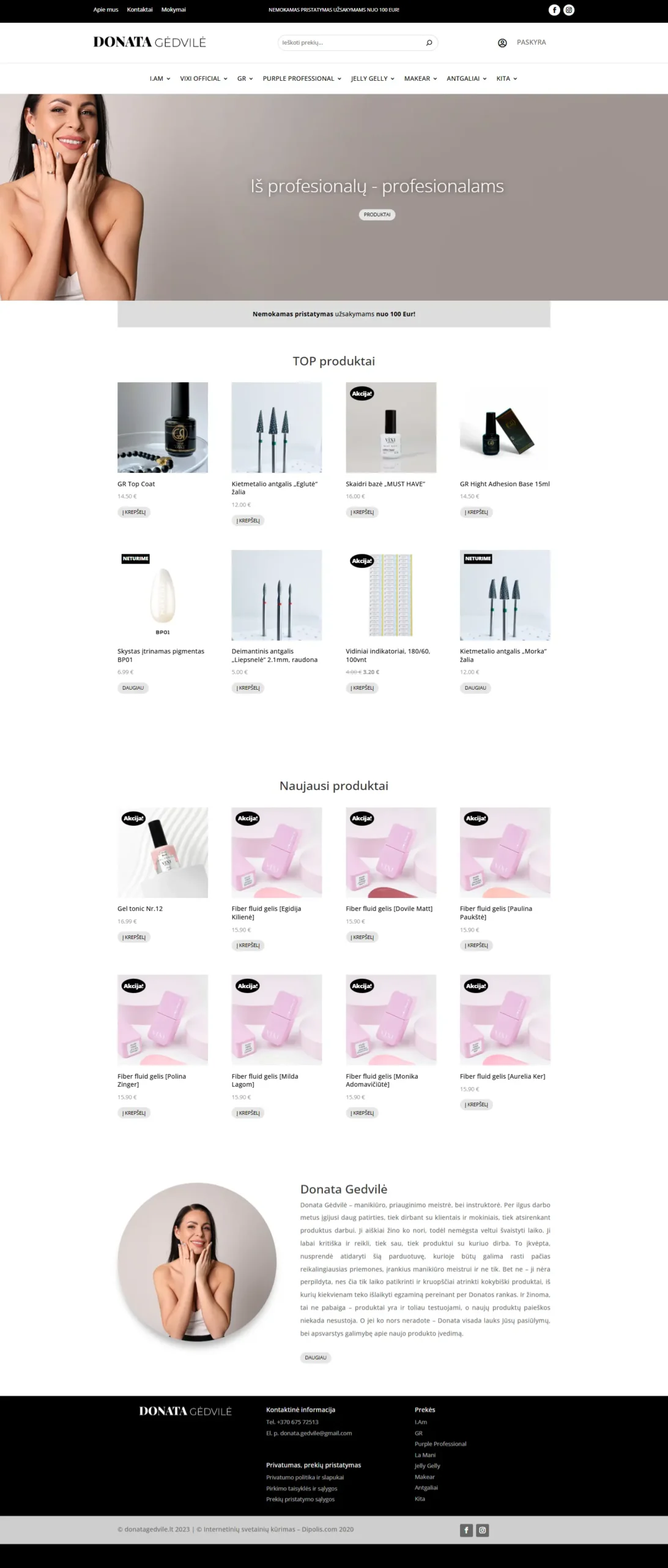 Profesionalioms manikiūro meistrėms skirta elektroninė parduotuvė, kurioje galima įsigyti kruopščiai atrinktus gelinius lakus, bazes, topus, akrigelius, įvairius antgalius ir kitas kokybiškų prekių ženklų – I.Am, GR, Makear, Jelly Gelly ir kitų – priemones. Parduotuvės įkūrėja Donata Gedvilė – patyrus manikiūro meistrė ir instruktorė, kuri kiekvieną produktą asmeniškai išbando ir įsitikina jo kokybe prieš įtraukdama į asortimentą, todėl pirkėjai gali būti tikri, kad randa tik laiko patikrintus, profesionalius gaminius.